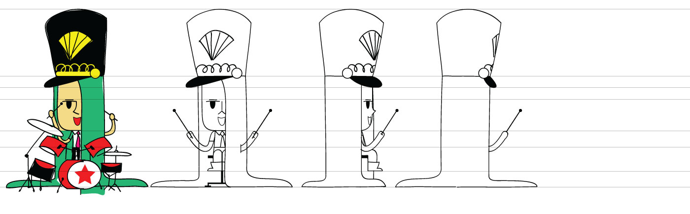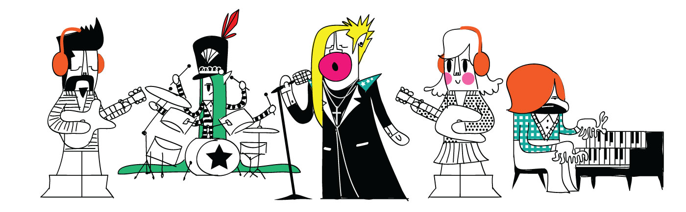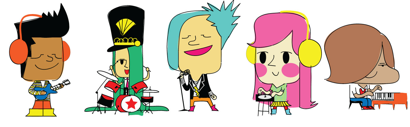 To design rock and funky characters that’s children friendly. Keeping character designs funky but simple. Designs to be suitable for 3D modelling.